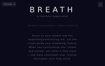 The visuals are minimalist but layered — think shifting geometry, soft gradients, and delicate particle systems that respond to your breath's pace. The audio is a generative ambient drone that shifts based on your rhythm, creating a soundscape that's different every time.